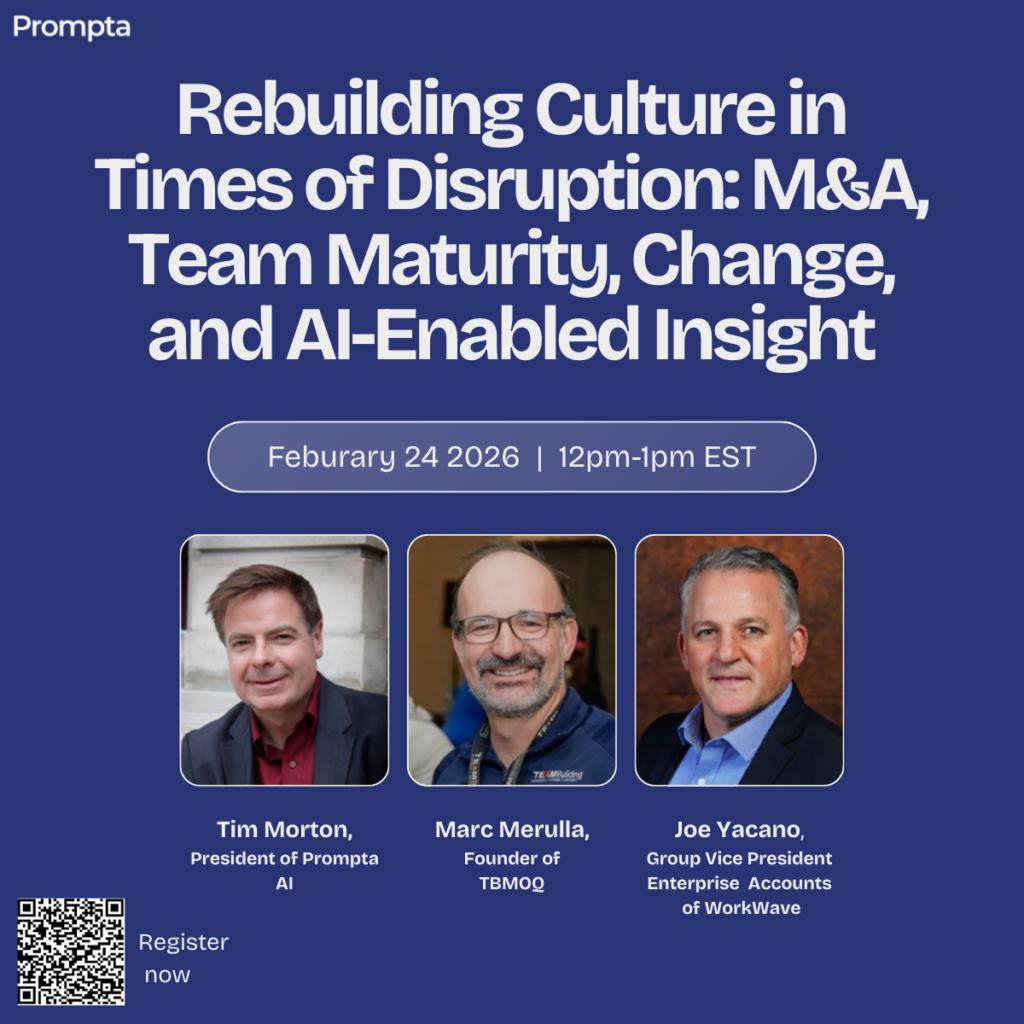 Join Tim Morton, President of Prompta AI, and Phil Buckley, acclaimed change management expert and author, for a dynamic conversation on leveraging AI to drive impactful and sustainable corporate culture initiatives.